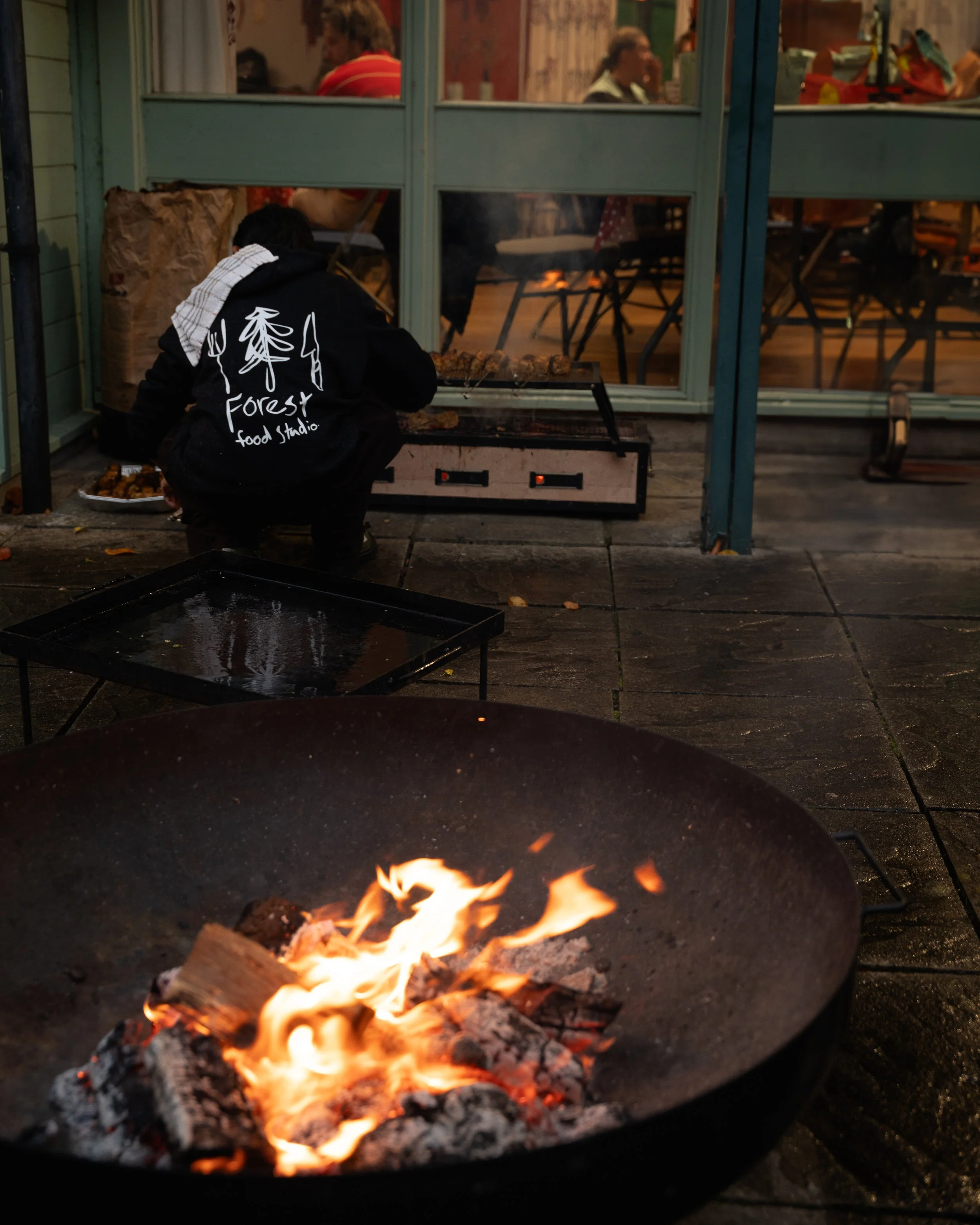 We cook outdoors, over wood and flame ; food that’s alive with smoke, scent, and connection.